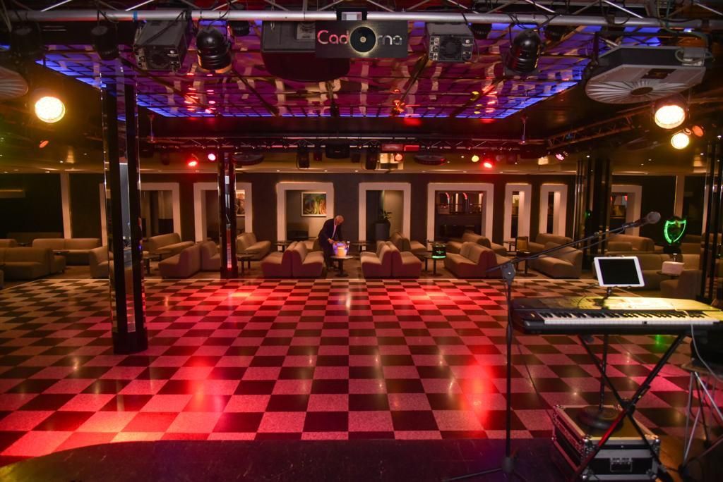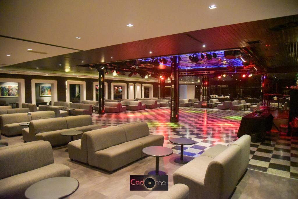Il locale è caratterizzato da un'ampia pista da ballo in marmo lucido.